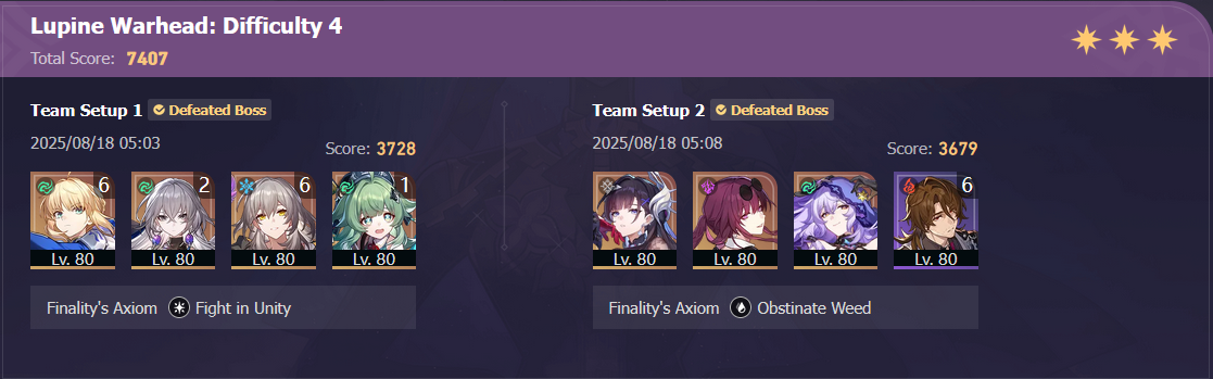 >>5443597 Для рамки надо четвертый уровень закрывать, первые 3 надо просто пройти не больше чем за 2 цикла чтоб получить звёзды и награды. А в четверг уже зависит от циклов рамка, за 0 диамантовая. Но четвертый за 0 пройти сложно в отличии от первых трёх которые не сложнее 12 этажа.