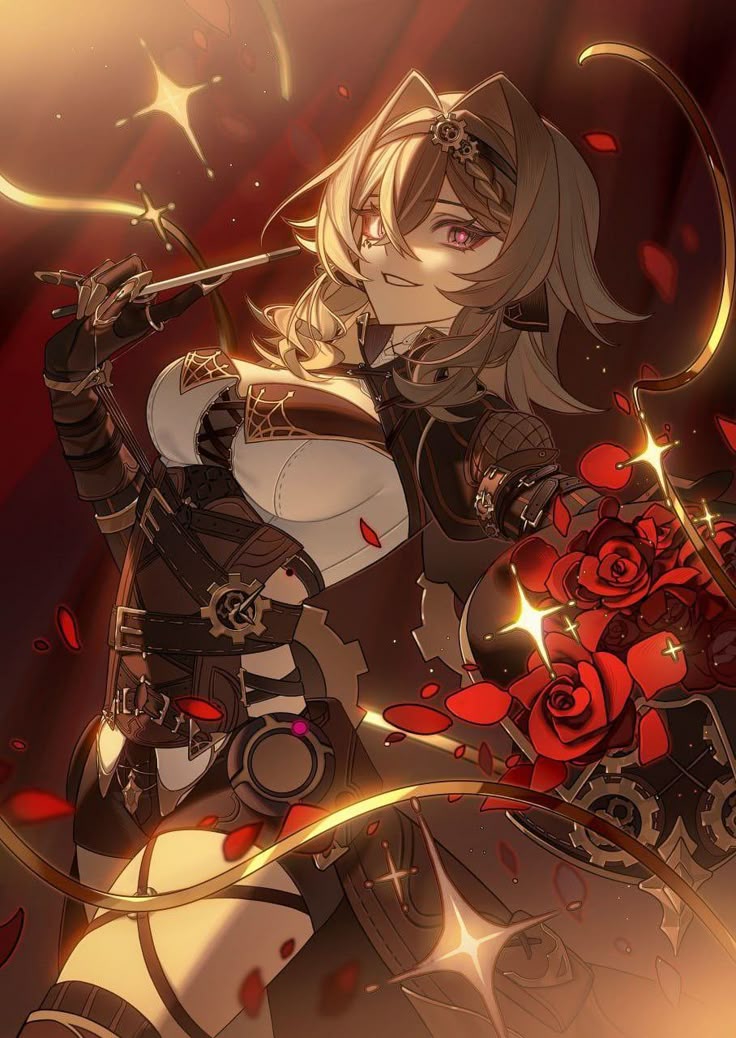 Энигматы. Из-за дроча на вопросы и иллюзии. Красоты. Из-за личного нарциссизма, зеркал и её повышенного интереса к Идриле. И Завершённости. Из-за того, что её персонаж отсылка на Тёмную башню Стивена Кинга, гг которой застрял в таймлупе, бесконечно путешествуя в прошлое из будущего. Символизм в часах. Посохе. Манипуляция временем и пространством. Хонкальный ромбик завершённости в ульте. И сама тема марионеток, как таковая. Вот это и будет истинная Герта. Завершённость как игровой путь мы увидим только к финалу сюжетки, думаю это очевидно. Другой уже вопрос доживёт ли игра.