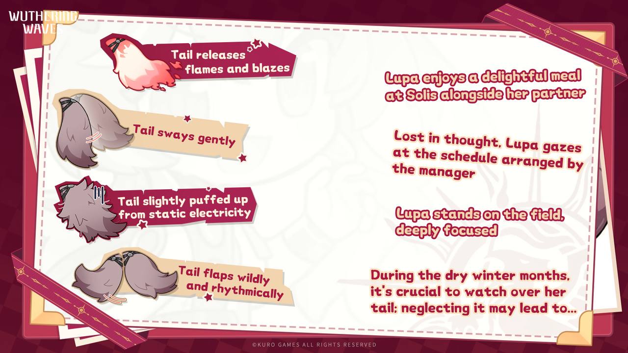 Примерно с 40 секунды: Журналист: Скажите, как вам удалось так быстро вернуться на арену после ухода из команды и найти нового напарника? Лупа: Это была одна из тех встреч, что начинаются с конфликта. Это была одна из тех встреч, что начинаются с конфликта. Это была судьба, предначертанная давным-давно. (загадочно) Лупа: Хм... Впрочем, это уже совсем другая история. Лупа: Как бы то ни было, для меня огромная честь — стать чемпионом плечом к плечу со своим партнёром. Журналист: Ваша частая смена напарников в прошлом была связана с какими-то трудностями? И как вам выступление вашего нынешнего партнёра? Лупа: В прошлом мне не раз приходилось менять напарников. Чаще всего — подчиняясь воле и планам моей семьи. Лупа: Что же до моего нынешнего партнёра... Думаю, вы и сами всё видели. Мы понимаем друг друга без слов и можем по-настоящему наслаждаться каждой секундой боя. Да, путь был коротким, но он принёс мне столько радости! Лупа: Однако мой партнёр не зарабатывает на жизнь боями. Так что, прошу вас, не стоит слишком допытываться и лезть в его личную жизнь, хорошо? Журналист (пытается вставить вопрос): Скажите, а ваш партнёр... Лупа: Так, на этом с вопросами всё. Лупа: А теперь... у нас с партнёром свой собственный разбор полётов. Лупа: В следующий раз я покажу вам ещё более зрелищные бои. Ждите, и не разочаруетесь! * Лупа: Партнёр... Партнёр! Лупа: Пойдём, пойдём скорее! Лупа: А теперь... нас ждёт наш собственный... «разбор полётов»...