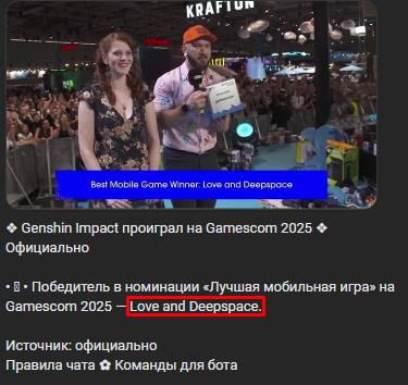 Тогда победить должен был Геншин. ЛаД-с несомненно популярен, но он даже близко не стоит по популярности с геншином, на стримы версий которого приходят под 400к человек смотреть, до сих пор, не смотря на инцидент с натланом.