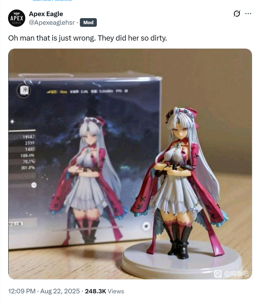 Другое дело все что я видел по боевке, по моим личному субъективному мнению, это хуже Вувы. Так что для меня Эндфилд - скип. Как и промиля. Единственная гача которую все-таки жду - это Ананта. У нее своеобразный вайб, она лишь системой персонажей похожа на вуву и геншин, но сеттинг другой и в целом она ощущается по-другому. Так что даже если там боевка будет хуже чем в вуве, а она будет, я все равно закачусь в нее.