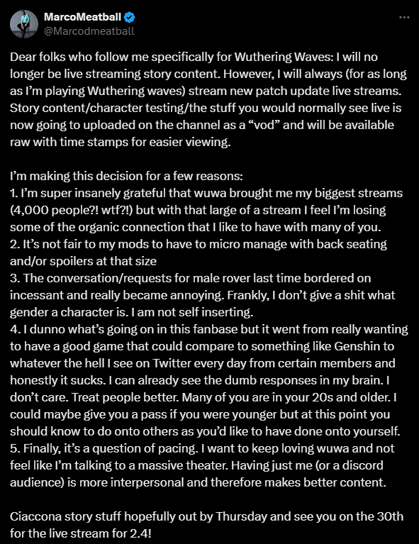 Я не жалуюсь на то, что есть M!Rover x Female Resonators и F!Rover x Female Resonators, но тот факт, что разработчики игнорируют моменты M!Rover x Male Resonators и F!Rover x Male Resonators, просто вопиющее неуважение и лицемерие с их стороны, чтобы обслуживать только группы определенного пола, будучи предвзятыми.