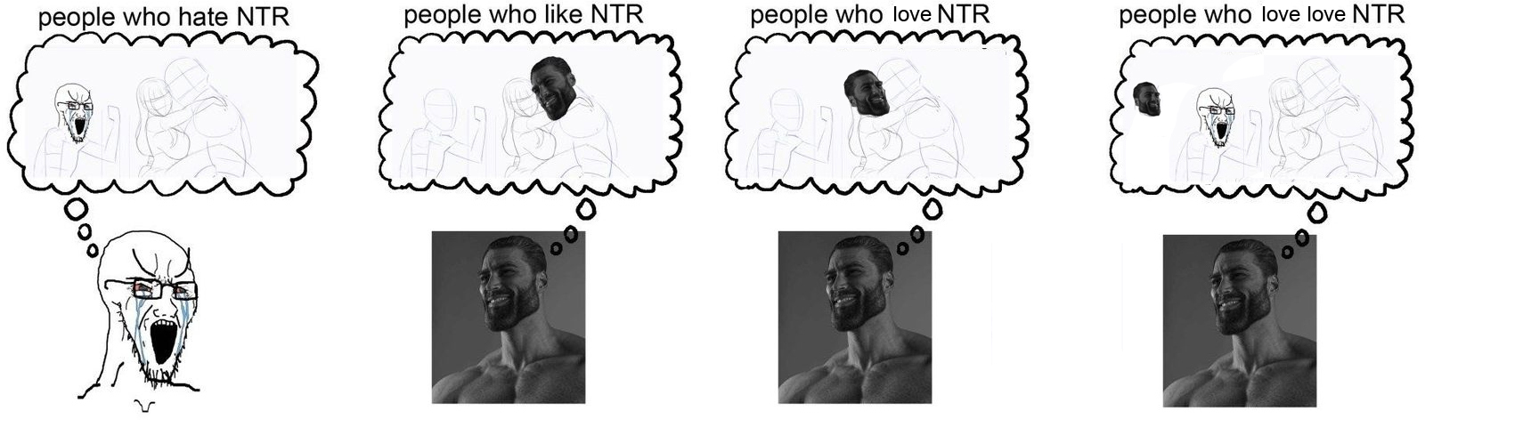 >>4938065 И 10, и 100 человек не считаются. Потому что тут обобщенное отношение, обобщенно большинство топит за сисяху. Покажите мне хоть кого-то - ну этого же форма речи такая у него. Я могу написать покажите мне хоть кого-то с соей вместо мозга и итт наберется несколько таких инвалидов, но это не будет значить, что у людей обычно соя вместо мозга.