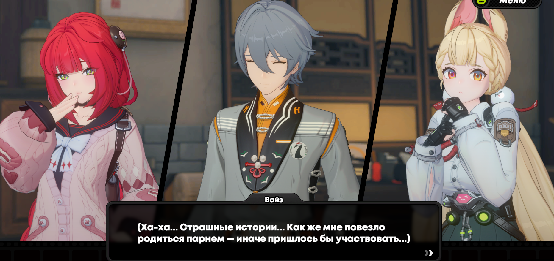 Всюдете не однократно это упоминали. Даже в текущей главе 2.1 У женской троицы девичник с хоррор стри , а вайз с радостью сливается к мужикам, так как не любит тему страшилок