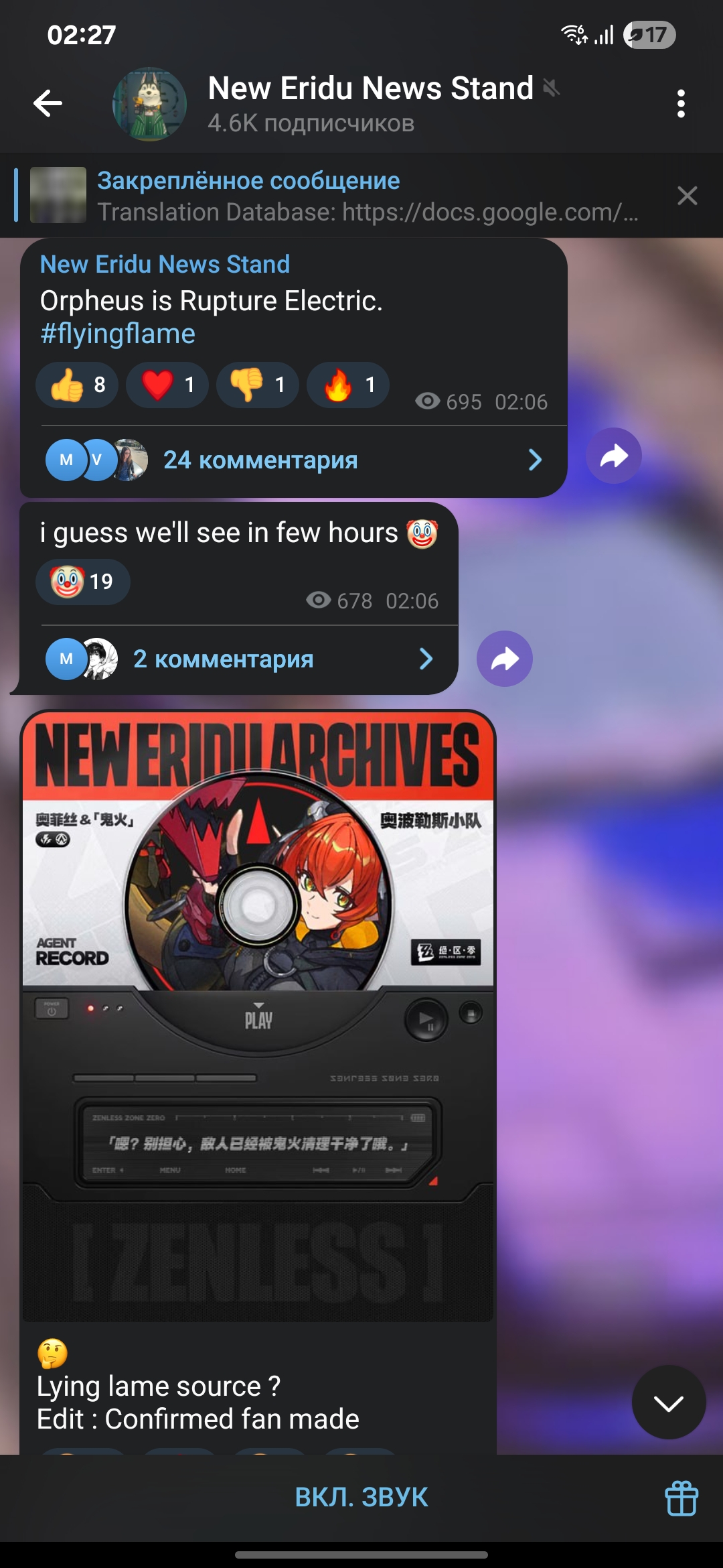 Не играл месяц. Пздц, хотел выкрутить юшку под крысу, за 170 круток не пришла проеб флипа. Осталось в баннере ровно десять и десять на Сигне. Есть еще 150 круток, но пошла бы она нахуй. Решил отложить на Орфею, а оказывается она электрорапчер. Да-да, ахуенно, спасибо. У нас уже есть каломасыч, янаги, Сэнби, го ещё четвёртого электродд.