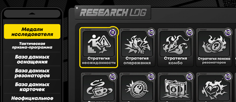 Остались: медали База оснащения, прямо куча. Резонаторы, это вообще невозможно собрать. Нет сведений, которые у меня тупо не прокают увы на жопетто. Ну и карточки. Но карточки слишком рандомные. Резонаторы надо как-то попытаться собрать, но это выше моих сил.