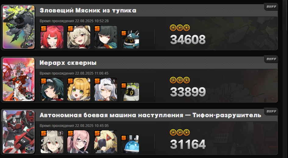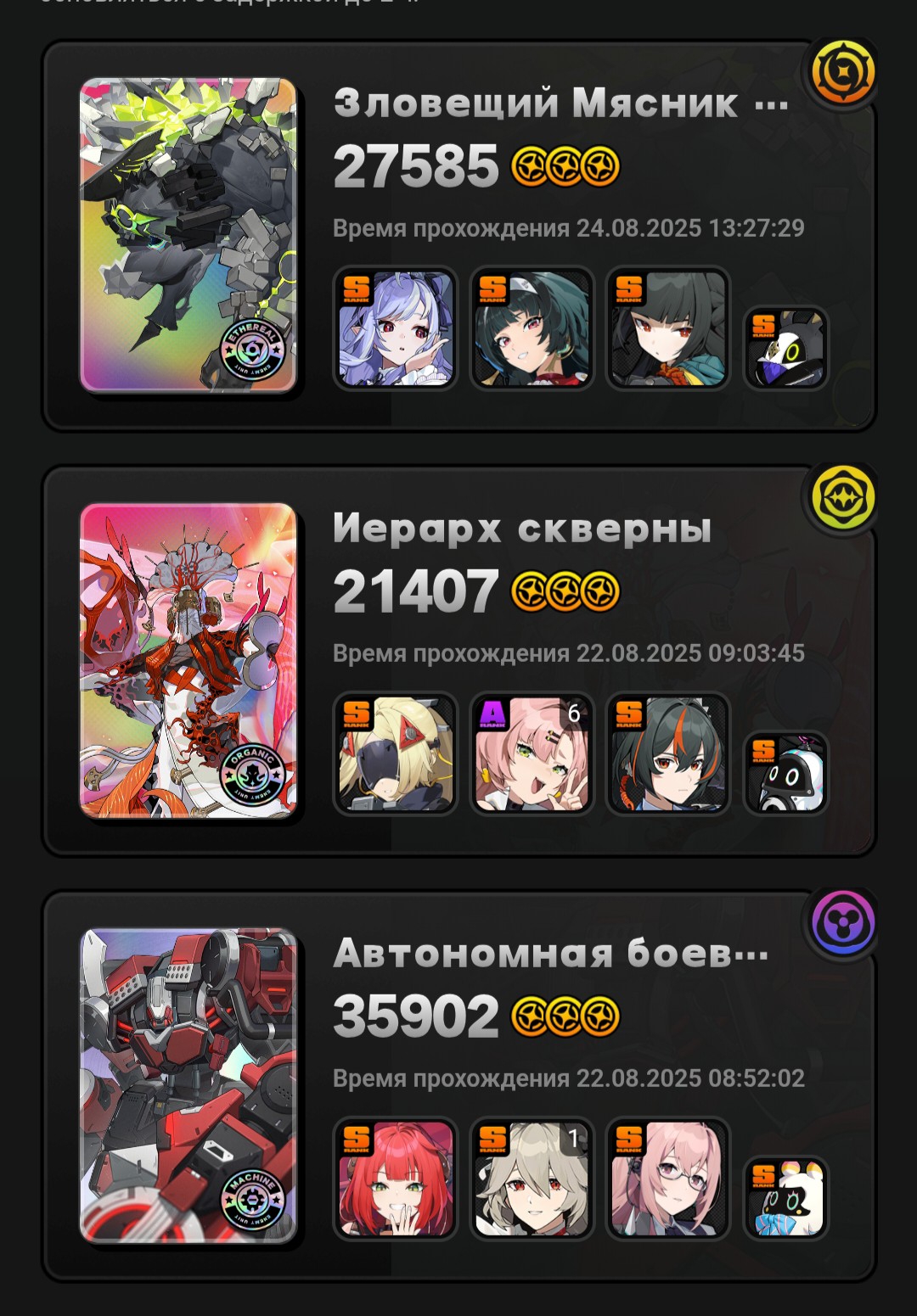 >>5457554 Ну у меня почти так же. С сигнами только Гашетка и Мибоб. Если Чжу перестанет закрывать, начну пробовать Исюань доставать, но она без сигны тож особо не дамажит.