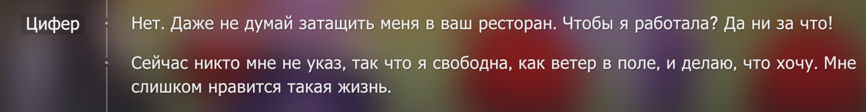 Нужно было больше сайдов с ней сделать и ивентов. Именно с МЕМОЙ, а не Киреной. И позволить её так и называть после, как Мема, а не Кирена, дабы чувствовать, что реально связаны.
