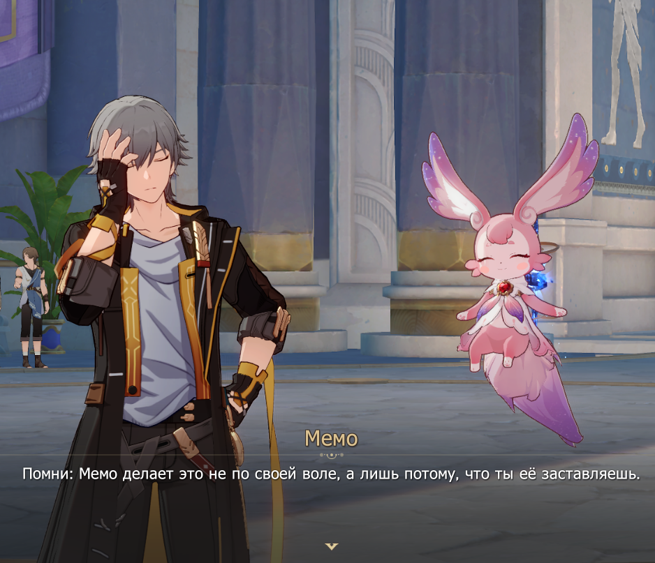 Как по мне, с Мемо было мало контента, что б привязаннасть перешла на Кирену. Ощущается навязанной девочкой.