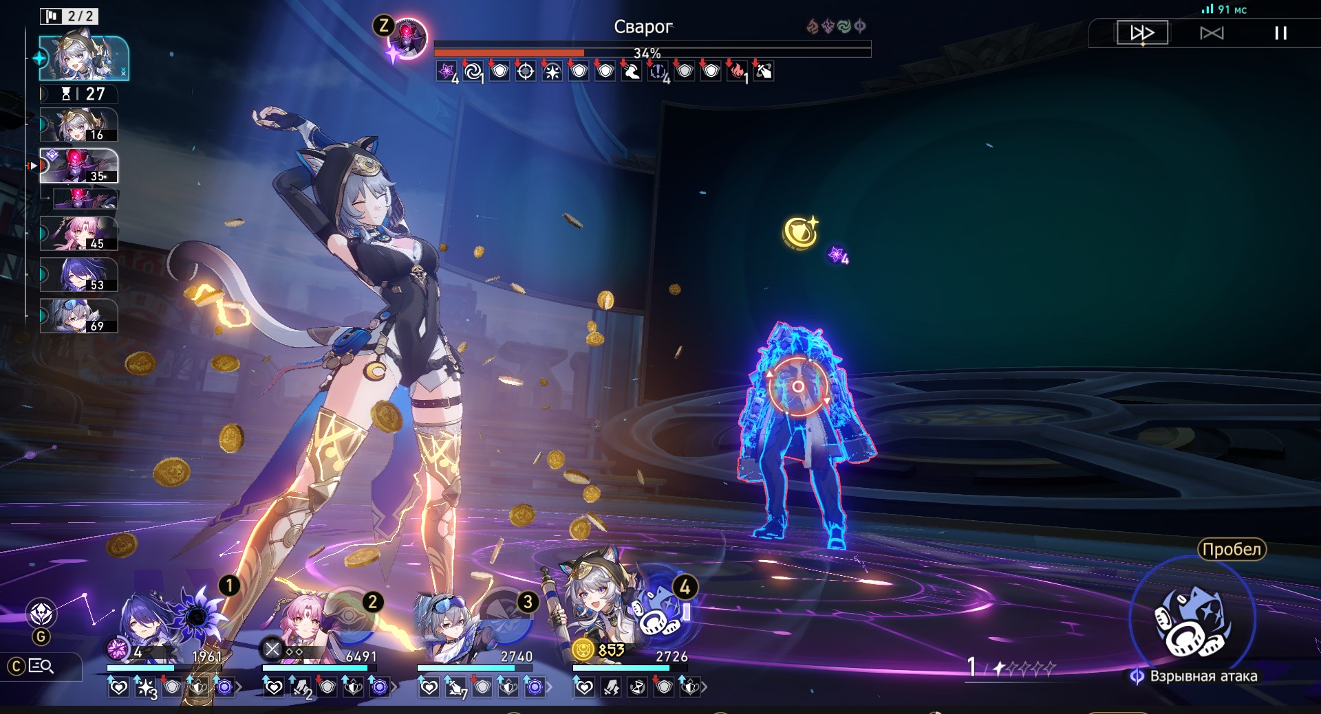 Никаких дотов. Только честный открытый прямой дамаг от атаки и критов. Нажимаешь кнопку - циферка летит. Мгновенная эндорфиновая отдача для настоящих мужиков! А попукивание для разгона и дамаг когда-то потом - для привыкших терпеть и калхолдить. Если так хочется привязать дамаг к ходам врага, как настоящий дуэлист - милости просим в полторашковую контратаку.