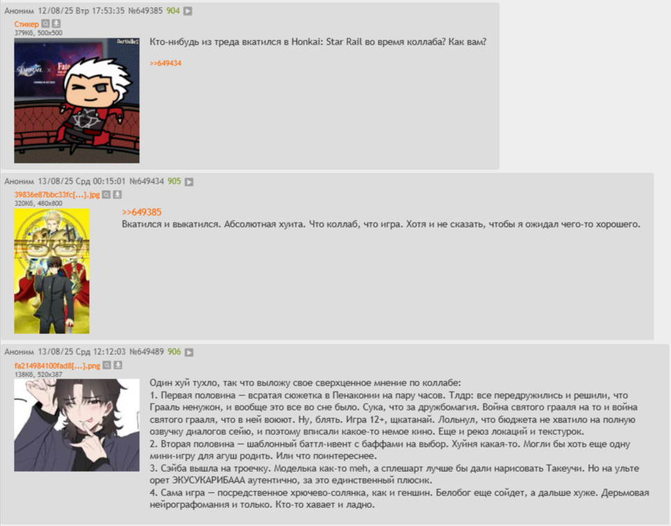 >>5402824 Ну так всё верно, игра у нас дерьмо, коллаб халтура и позор ляо, улыбнуло только, что хоть отсылки для шарящих были, но их по пальцам пересчитать можно, ну и чарики скорее хорошие.