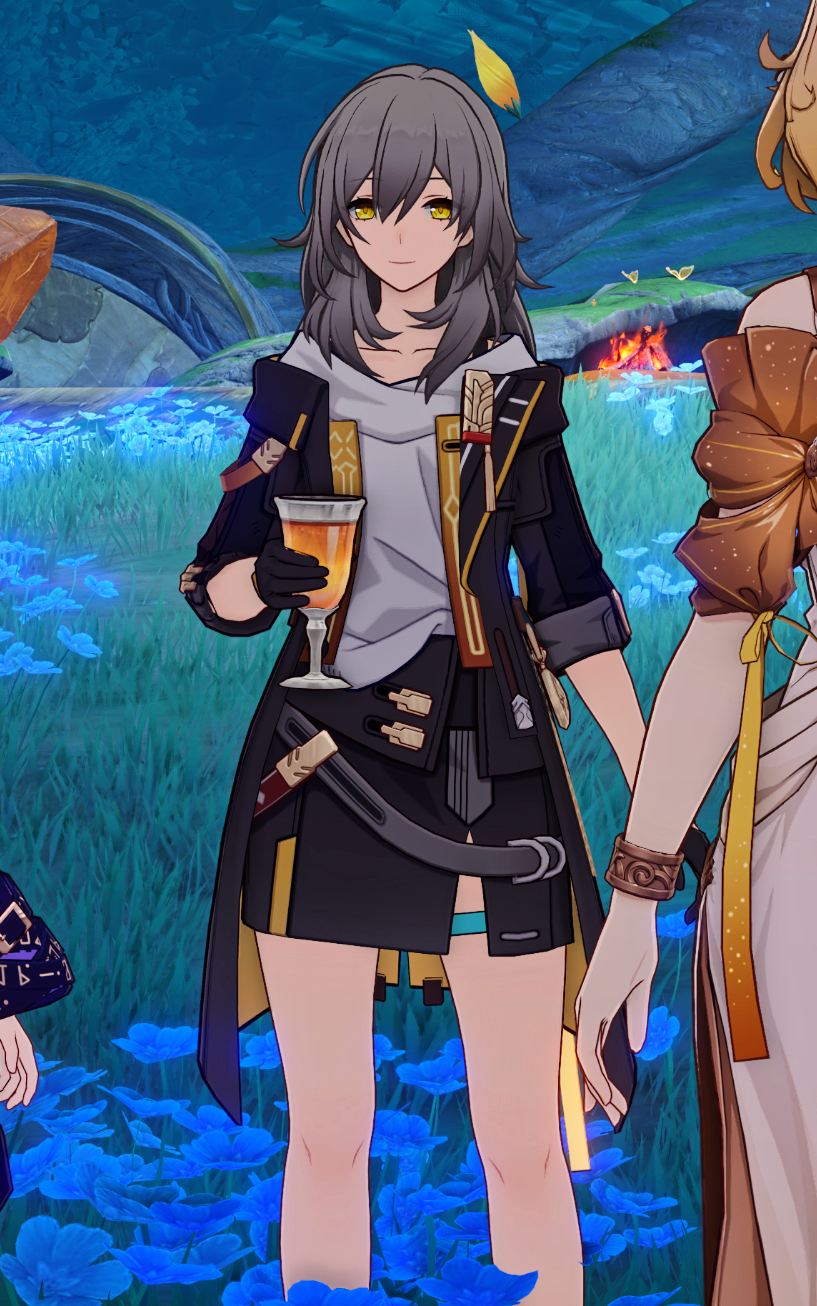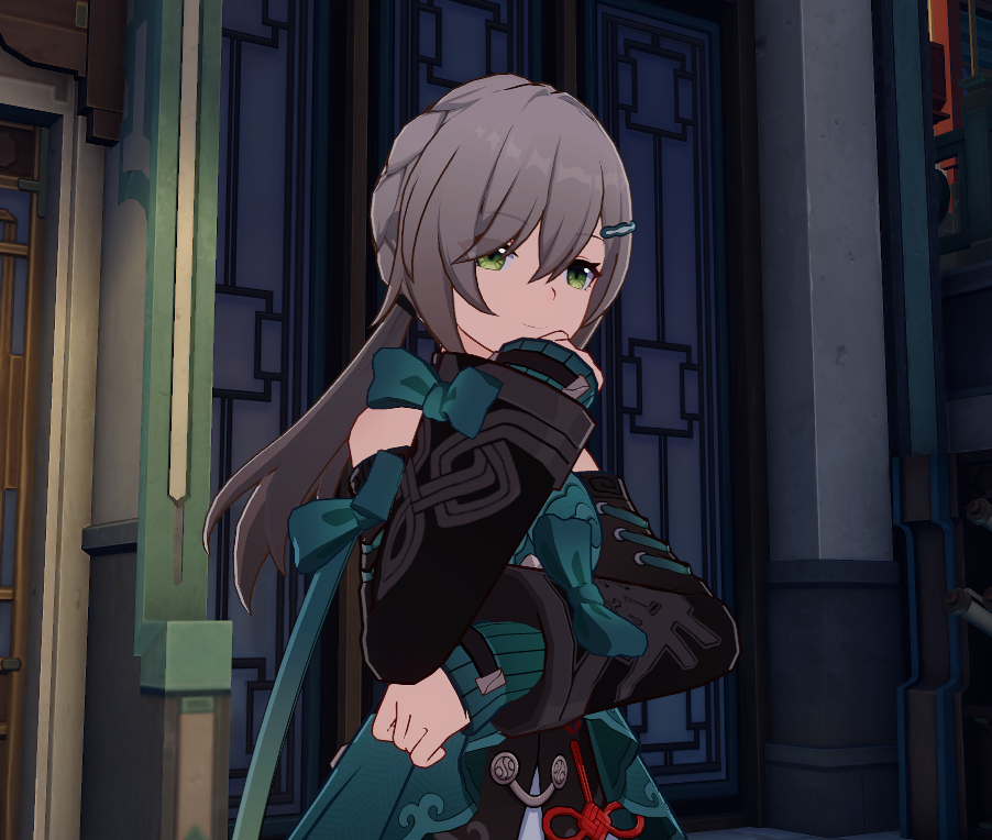 Объективно Цзинлю Едва ли наберётся 10 минут скринтайма на всю игру, но почему-то она играбельный персонаж Кстати единственный персонаж игры которая никогда не встречалась с Первопроходцем лично