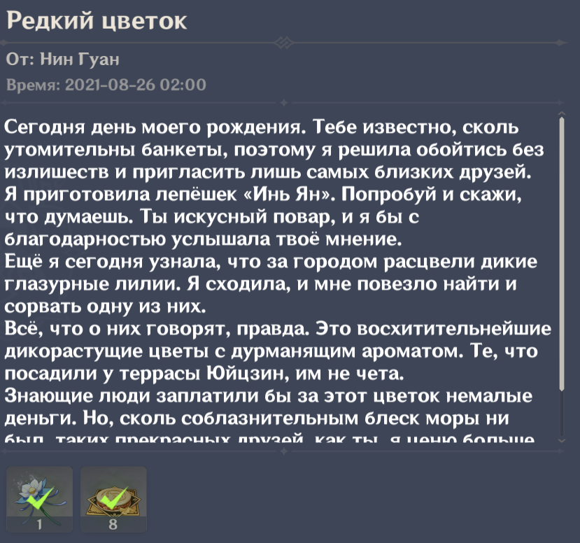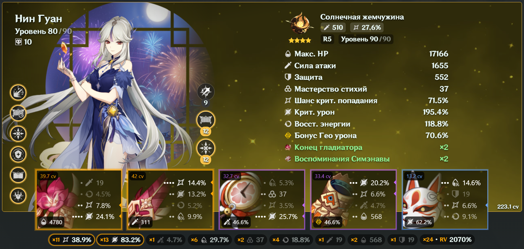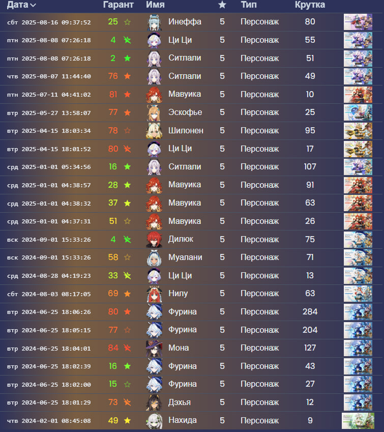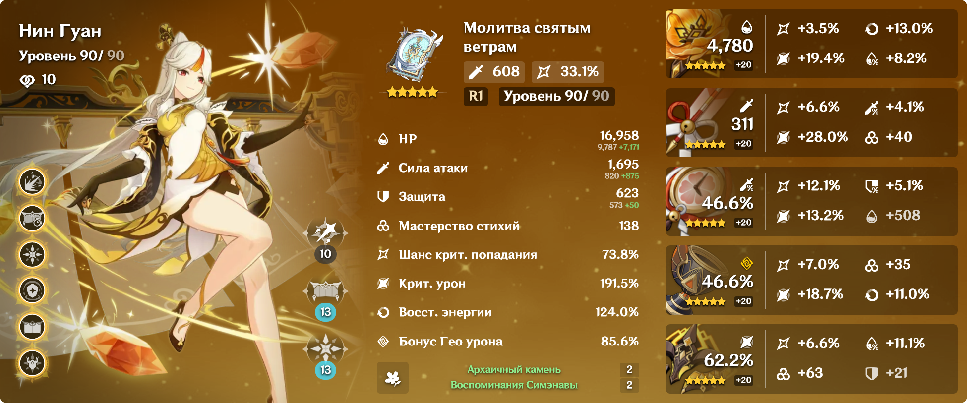С днем рождения Ниночка! Начал играть в игру за день до ее др и долго не понять кто она и че это она мне пишет на почту. Пока с1 Тиори не накрутил, играла с Ноэллькой, баффала гео ширмой и носила знать. Обладательница самого сложного испытания как по мне, но пуки я все же достал.