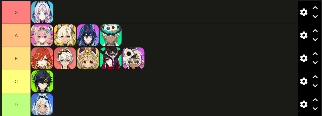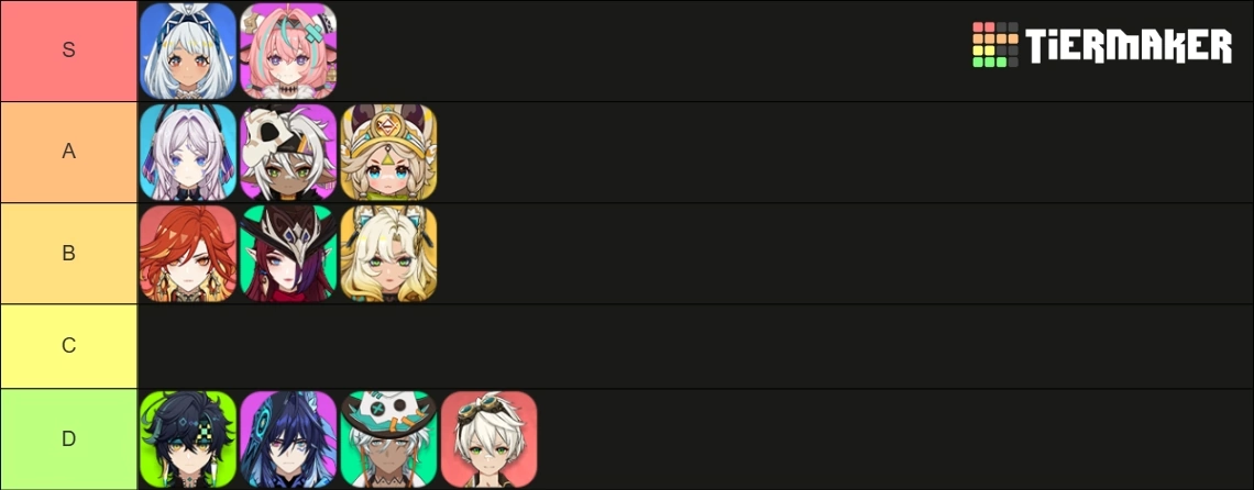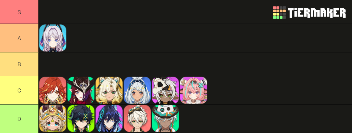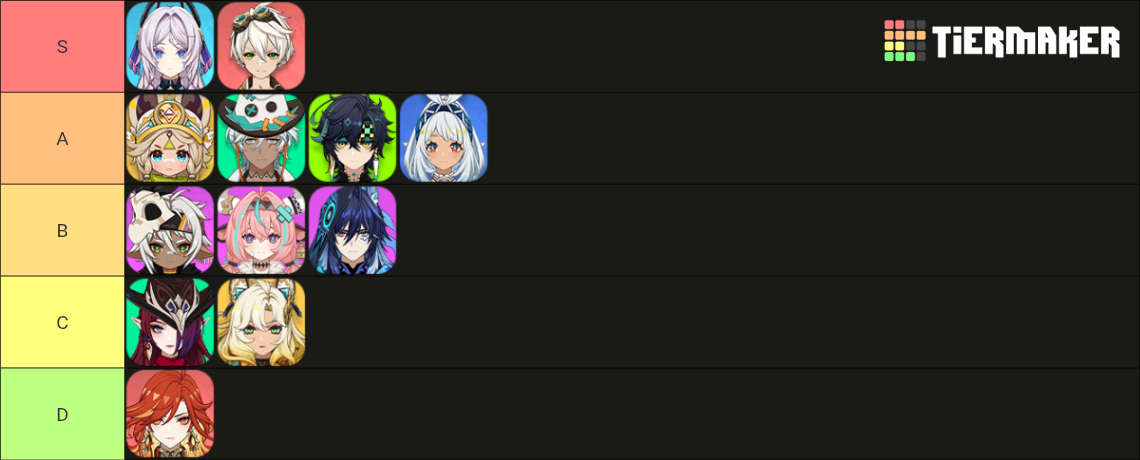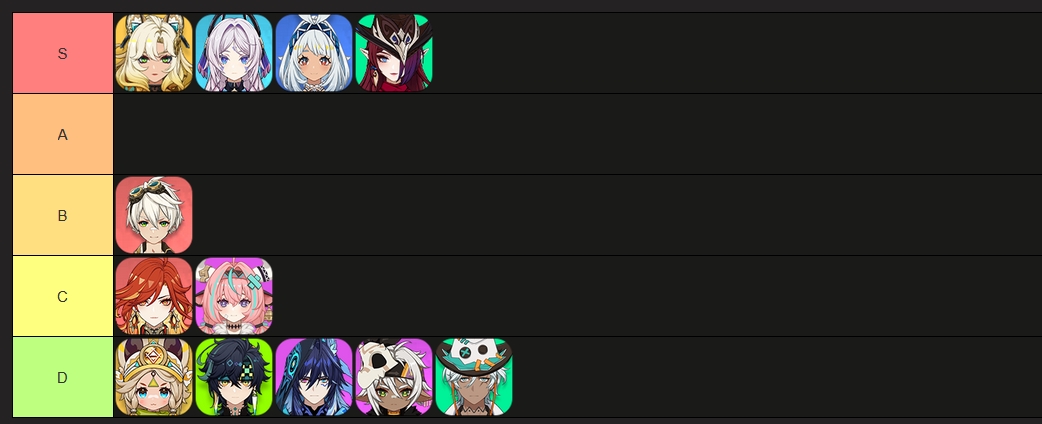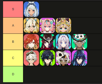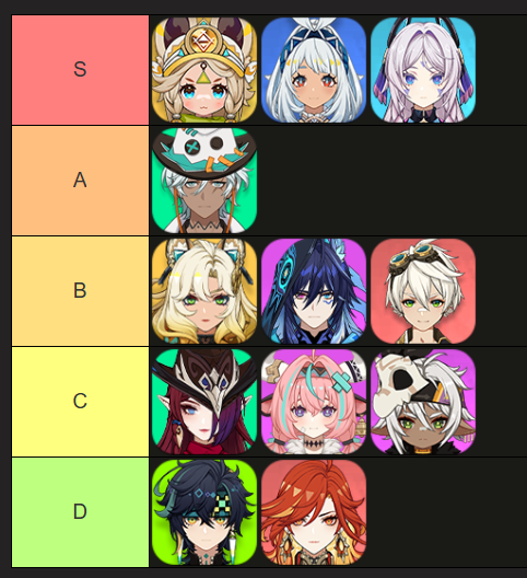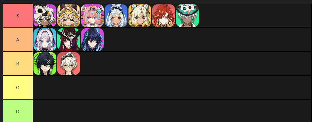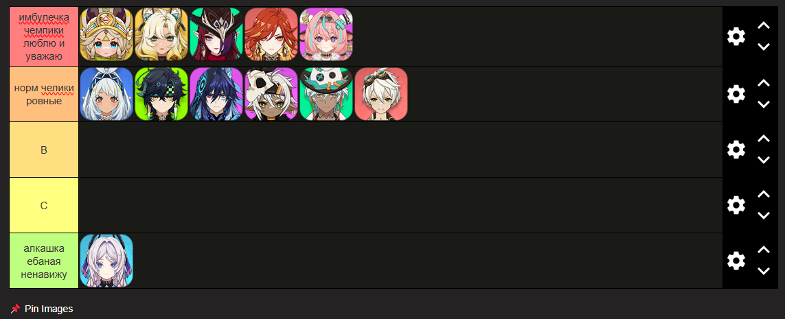 Раз тредик умер, а Натлан кончился, то предлагаю сделать свои тир листы по Внешке и Характеру вышедших персонажей! Сразу предлагаю шаблончик: Первые три жестких места только самые любимые вайфы, далее уже кучкуй по интересу Можно составить тут: https://tiermaker.com/create/genshin-natlan-characters-16104089