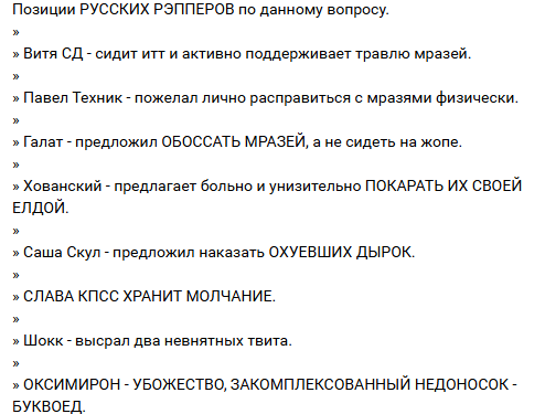 >>5461868 В гугле не ищет никакой инфы по этому запросу И собственно я не вижу ничего плохого в лгбт контенте, как и лоликоне, или какой нибудь ебле с нигерами, для меня это просто сорта качественного контента... >>5461876 Будто что то плохое