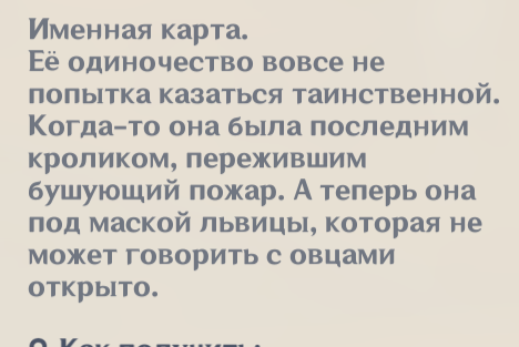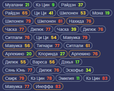 Отпишусь за свои предпочтения 1. Ситланя - просто топчик, с самого трейлер решил что вытащу ее. Очень милая, вписывается в культуру которую я ждал, характер суперский, мемная и даже трагичная. А еще секси и ПикМи 2. Было сложно, но Шила ушла на второе место, хоть она яростно сражалась за 1е, тк тоже очень зашла с самого трейлера, милая бимба гяру котейка, НО обосрамс вышел с нагромождением ее ролей. Она и гяру, и лентяйка, и диджей(что еще вяжется), И кузнец, И изобретатель, что уже просто перебор, учитывая ее первые характеристики. Так что ушла на 2 место 3. Акульчик - милаха, веселуха и генки! Очень приятная девочка. Было весело с ней и Качиной исследовать первые части Натлана