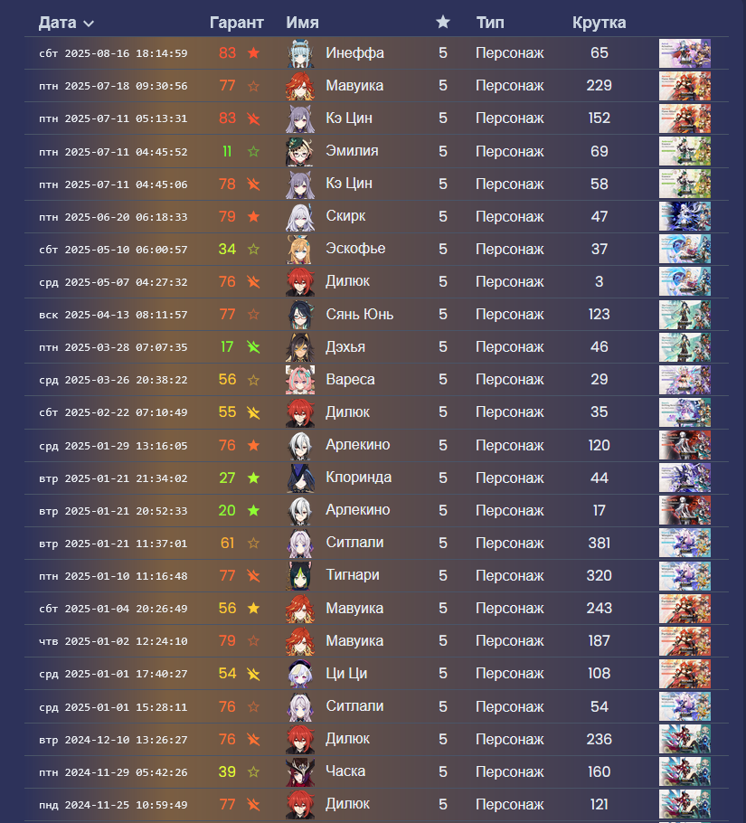 >>5462368 Я лично верю в теорию обратного везения на пятерки и четвёрки. На пятерки мне очень не везёт (ну ладно, в кои-то веки выпала ранняя Муалани, уже делился радостью - но и то выпала с механики компенсации проигрышей 50/50), а вот четвёрки лутаю все С6 без проблем. Иансан, Оророн - запросто. На аккаунте есть все четвёрки, и может всего три из них - не С6.
