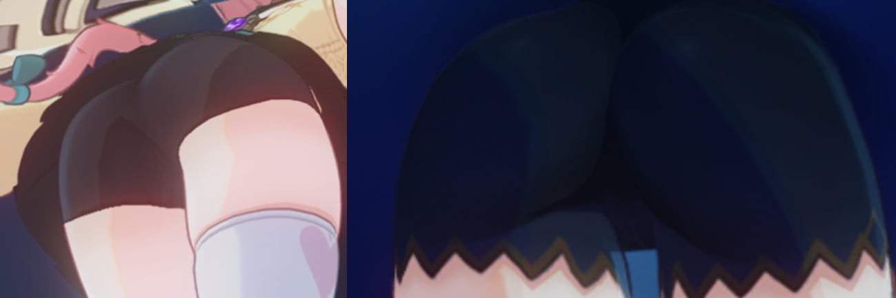 >>5463455 Буквально одно и то же. Или ты про эти линии? У коровы их рисовать негде, ляо ей шорты по колено не делал как сахарозе, трусы заканчиваются на самой жопе.