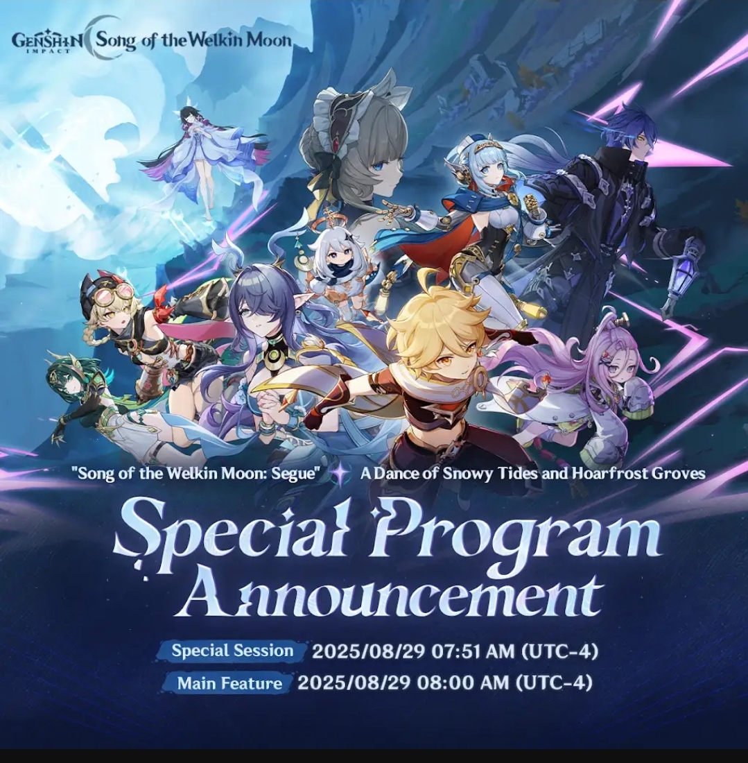 Трансляция специального стрима новой версии Genshin Impact начнётся 29.08.2025 14:51 (UTC+3) на официальных каналах на Twitch и YouTube! Стрим будет состоять из основной части с командой разработчиков Genshin Impact и отдельного блока с участием приглашённых гостей.
