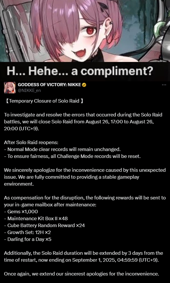 - Bunny Girl Costume Rerun in September In September, the 2025 Bunny Girl event COINS IN RUSH will commence. Unexpected Nikkes will appear with new looks in this event, so please look forward to it. While the Bunny Girl event is ongoing, we will also bring back bunny girl costumes. Bunny costumes of Mary, Viper, and Folkwang will be back this time, while Rupee's rerun will happen another time.