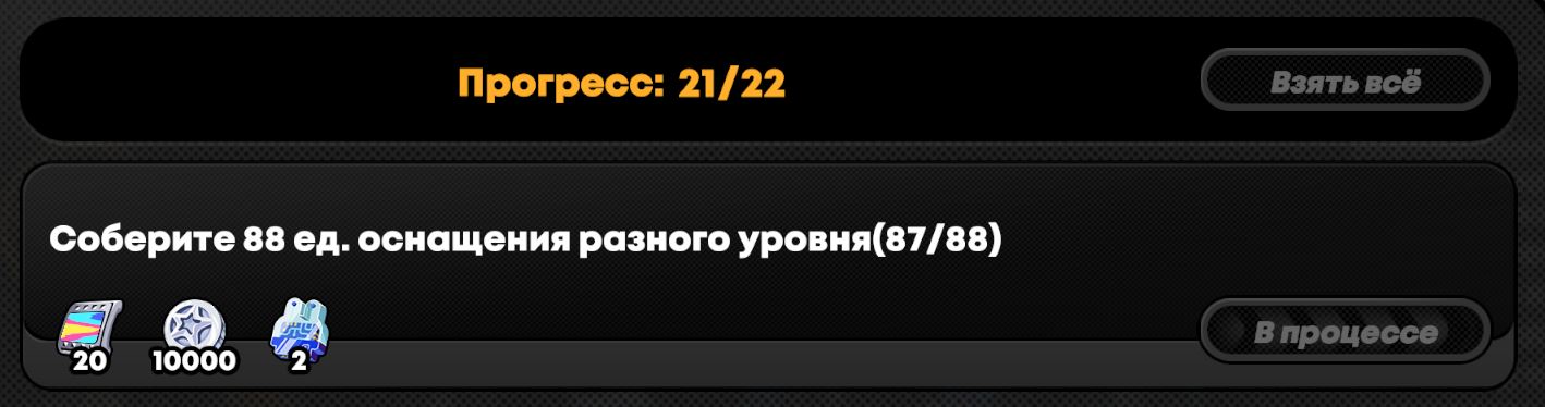 Анончики, выручайте! Пытаюсь чистить нулевую, там есть условие собрать 88 штук оснащений разного (?) уровня. Я их собрал 87/88. В тоже время в БД оснащений всего 58 и я их тоже собрал. Откуда у меня еще 29 я не знаю, но не хватает 1 штуки. Где можно посмотреть, что я пропустил?