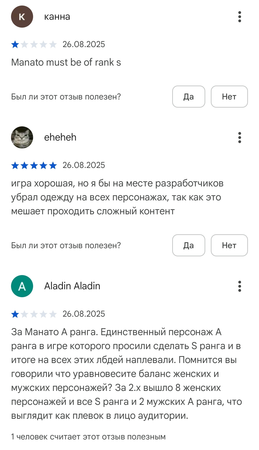 Почитал бахи сисов в гугл плее, общий посыл ета вам за Насрано А, где сосиски и вы абищали сосисок, при чем ни того ни другого никто не обещал, это какой-то сюр. Я бы понял если условно его заанонсили как s, а потом чёт передумали и переделали, тоже самое касается "обещаний" сосисок, которые видели только наши паймоны в переводе отсебятине от таких же тг паймон, где типа в интервью разраб такое сказал, когда такого не было.