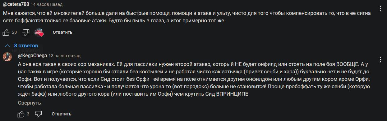 >>5468295 Сид баффает каличей нападения на уровне Астры. Но пачкострой у неё порезан из-за пассивки. Со скрина бред написан, ей как раз таки подходят онфилд атакеры, как сэнби или акула, даже с евой она играется, потому что Сид буквально жмет ешку с холдой и срыгивает в кармашек. Орфей же скорей под Сэнби сделана, хотя и с Сидом хорошо стоит. Хотя бафф Сида настолько большой, что связка Сэнби/Сид дамажней связки Сэнби/Орфей. Вообще, у неё своего дмг много, можно в Астра/Николь сетапе играть, даже без рабочей пассивки. Не удивлюсь, если будет лучше чем с инвалидами, которые её вниз будут тащить.