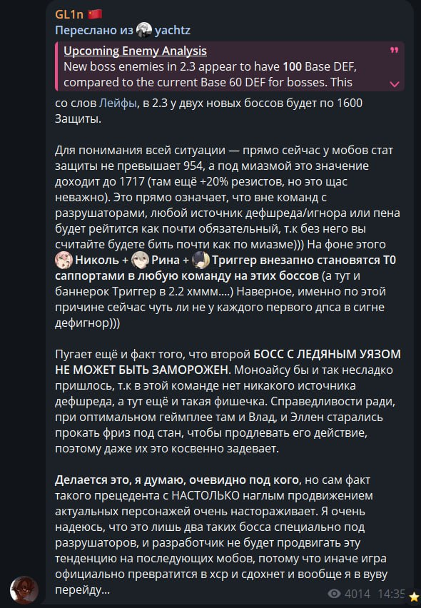 >>5468502 Уже два. Причем там реальный кокблок, как на мяснике. Те за плашку не рапчур просто урон отпилят нахуй. Ровно как Миябу, у Мияба тоже было два босса. Брингер, который просто бесячий и позже мясник, на котором уже прямой дебафф на уронвсем остальным за не тот класс. У них там реально дорожная карта один в один, делает одно и то же.
