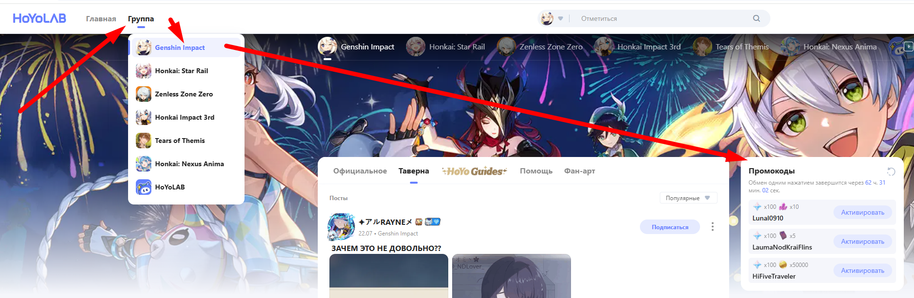 ✦ Промокоды https://genshin-impact.fandom.com/wiki/Promotional_Codeshttps://genshin.hoyoverse.com/ru/gift