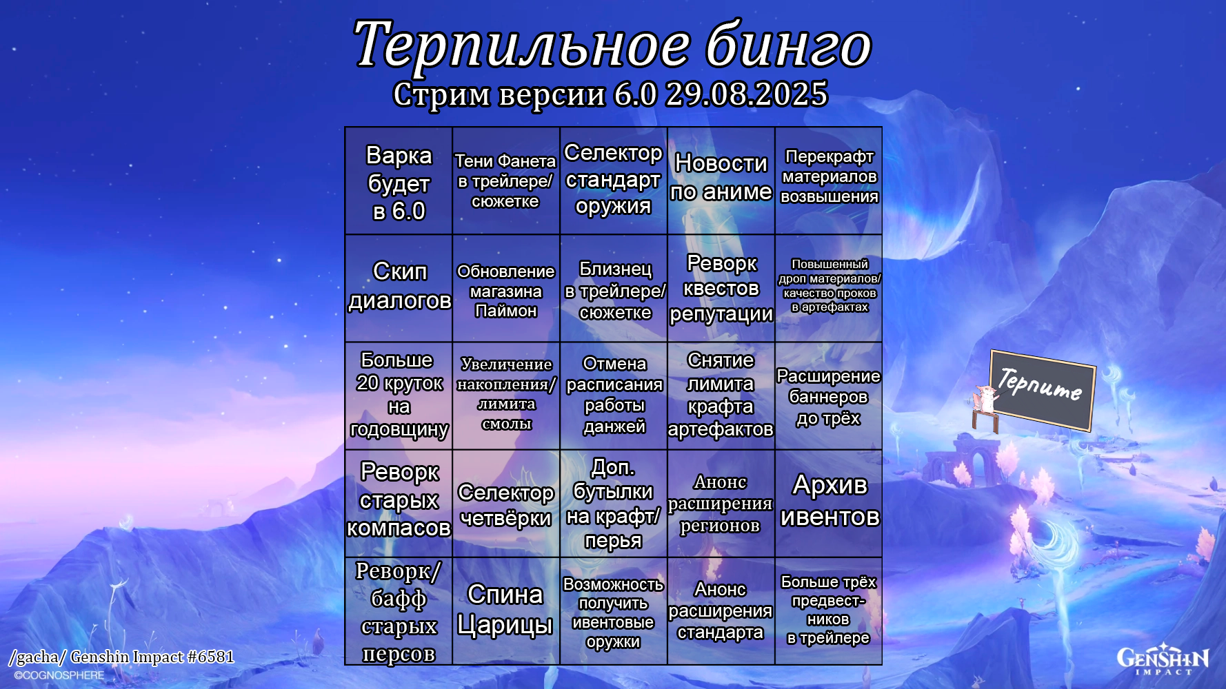 Вы вообще что крутили с релиза? Неиронично всё подряд? Зоопаркошизы без личного вкуса и интереса должны страдать. Ляо всегда четко обозначал какие пачки для меты, а какие копиум для энжоеров. Если вы на полную вкладывались в энжоинг (количеством или качеством), то хули разнылись? Вы сами выбрали быть слабее других. А у грамотных инвесторов всё в порядке с экономикой и есть пару с6 персов.