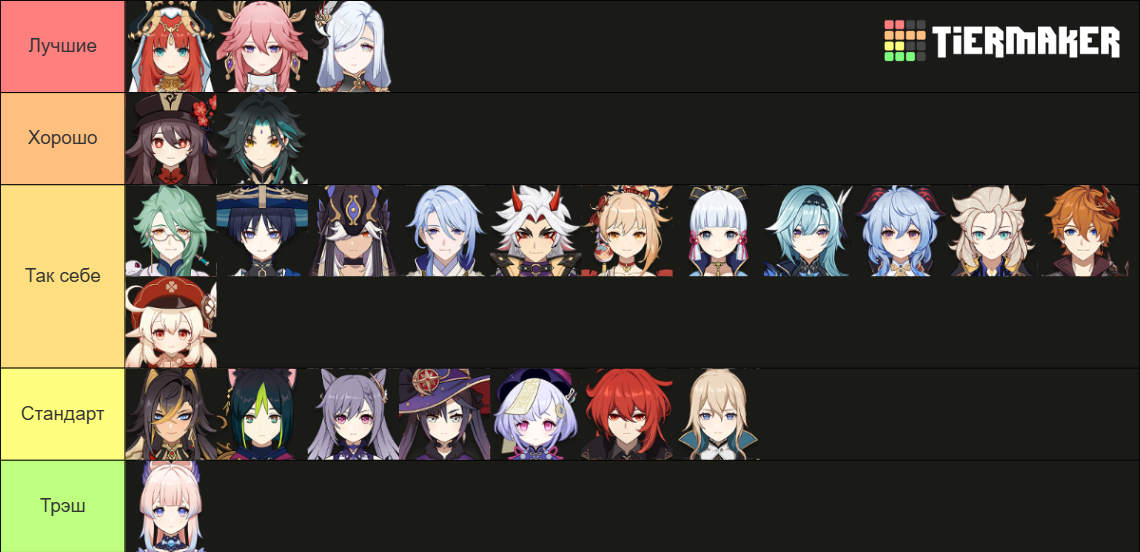 S - засол на самых универсальных лунных выблядков с реакциями A - нахида, казуха и им подобные B - дд от реакций вроде альхайтама и нилу / фурина C - прочие хп-деф скейлеры / универсальные дамагеры с обычными скейлами