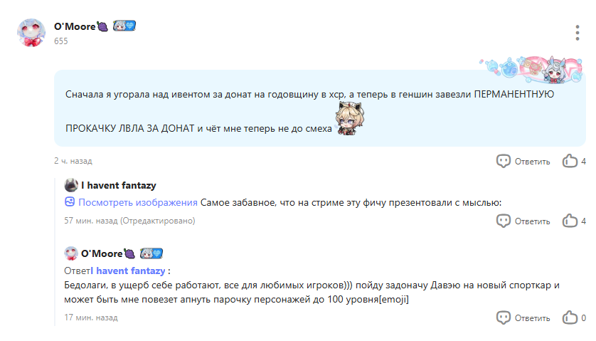 Что-то какой-то неприятный привкус от этой обновы. Какая-то максимальная дойка геншинят, нахуй. Ну мало тебе денег, выпускай скины регулярно, и понесут тебе шекели. А запрятывать ДИАЛОГИ С НПС за донатом - это уже за гранью нахуй.