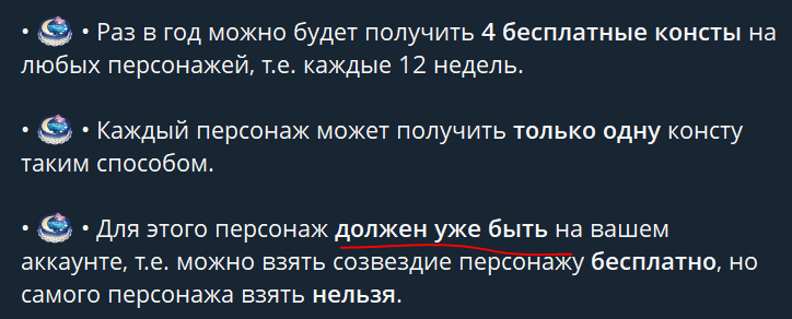 >>5481949 Чел, я тебе больше скажу, нет ни единого намёка, что можно будет когда либо взять второй раз того же персонажа. У тебя в год 4 консты, но одниковые взять нельзя, ивент перманентный, и через год он не исчезнет, а ты и дальше пойдёшь его делать, и брать ещё 4 консты без повторения.