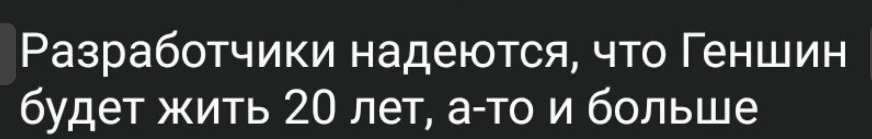 Сушите сухари. Наруто конфирмед. Если вы мечтали увидеть логическую развязку за 6 лет со всеми архонтами, предвестниками и селестией, то вот вам 20 лет. А когда 20 лет пройдёт вы будете совсем колясами, разглядывать витрину со своми 1500 персонажей и рыдать как проебали время пока еще могли действовать.