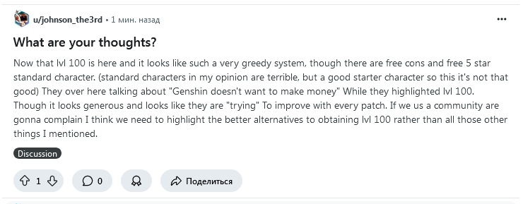 Ляо красавчик, вместо ревардов байтит крутить протухшее говно ради халявных конст, а потом сливать оставшиеся крутитки ради левел капа. Паймоны терпят.