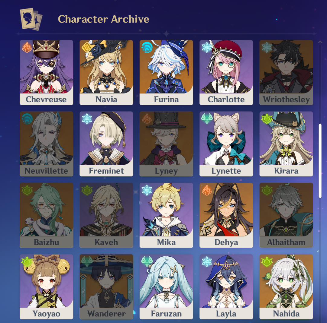 ✦ Показать персонажей картинкой https://akasha.cv/ ∙ https://enka.network/ ∙ Гайды https://t.me/genshin_academy/https://keqingmains.com/