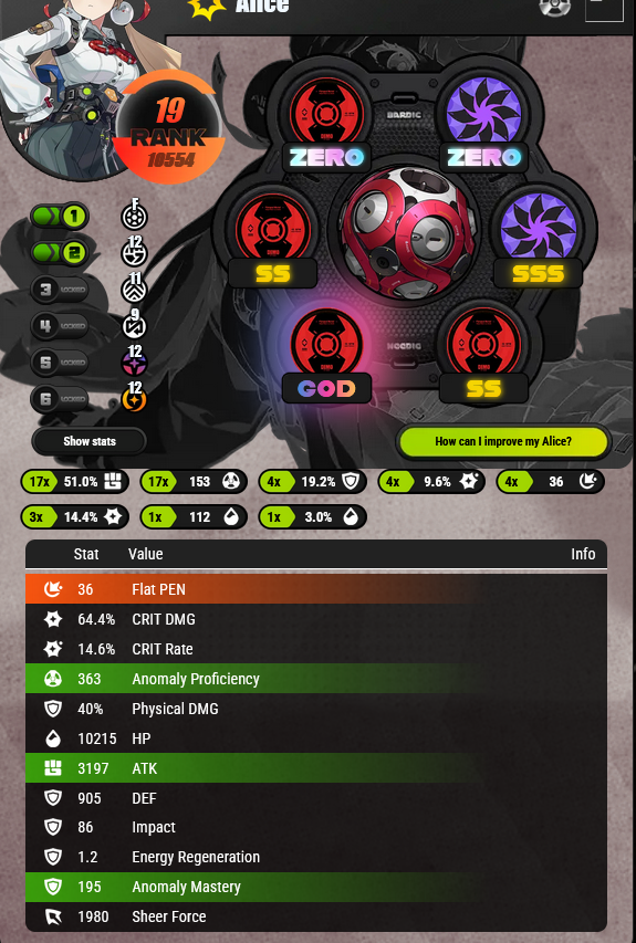 Раз новенький, то советую пройти вот сюда https://www.prydwen.gg/zenless/tier-list , потыкать на нужных тебе перчиков и посмотреть во что кого одевать и че вообще качать, как играть. Там же были гдет еще гайды для нюфаней вроде. Диски пока не фарми до появления голдовых.
