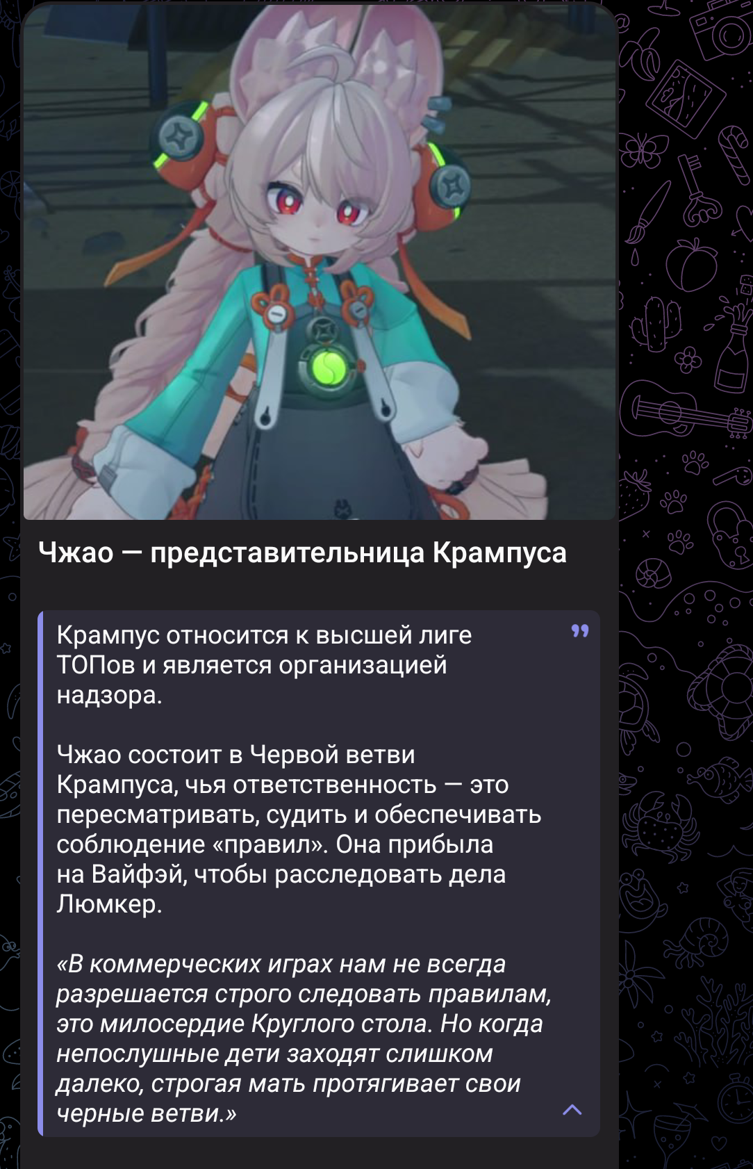 >>5501474 Визуально мне из 2.х понравилась только Фуфу и Чинацу, они выглядят стильно. Еще тру-Кроль прикольная. Чисто из-за циферок выкрутил шифер и енота. Алиса мне внешне понравилась, но геймплей у неё говна, особенно ебанутые ешки, в которых она тратит время без заметной отдачи и еще по экрану шароебится Вонючая пятка мне не особо зашла, но покручу чисто для Бургера с Триггой. Шуба настолько уебанская, что её вытягивают только рога и рыжие волосы. Бабкин кальмар кал визуально, проебали всё, что могли. Нейрокоза ну норм.