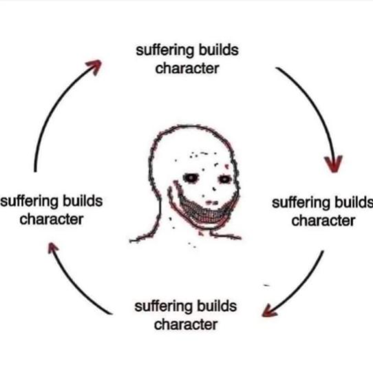 >>5501537 >Просто заебало. Когда у всех пиздец - то ни у кого не пиздец, это просто местная норма. Жалейка не резиновая Чел, ты просто не шаришь, что у 90% населения шарика жизнь здесь и сейчас — говно. И даже тыквенный раф у везунчиков, капчующих в странах первого мира (типа тебя и меня), никак не отменяет этого. Что уж говорить про зюзя-Риду, который в принципе в военном положении перманентно находится. Китайцы срисовывают культуру сеттинга чаще всего с себя и своей же действительности. Можешь чекнуть, собсна, че из себя представляла жизнь в Китае каких-то 50-80 лет назад, когда нормальность была редкостью, а вот гробпидорокладбищенский настрой — нормой.