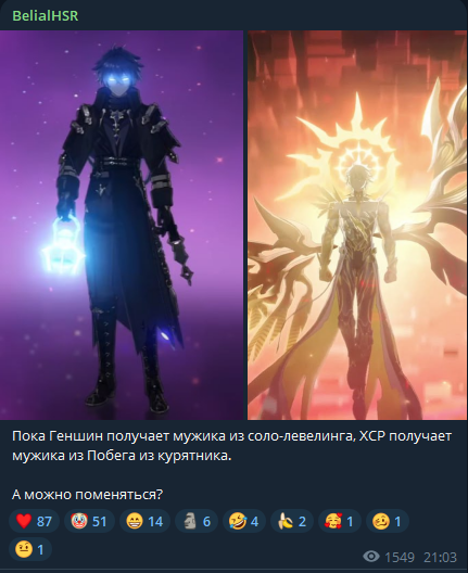 Кстати, хорошая возможность запилить опросник, провести раздачу или выполнить любую другую задачу, требующую сепарировать хонкаевичков от геншинят. Раз последних тут завтра, очевидно, не будет.