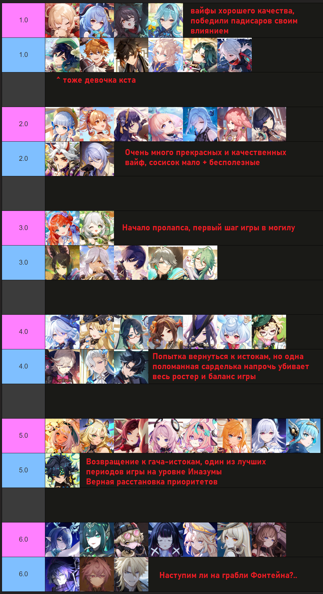 ✦ Показать персонажей картинкой https://akasha.cv/ ∙ https://enka.network/ ∙ Гайды https://t.me/genshin_academy/https://keqingmains.com/