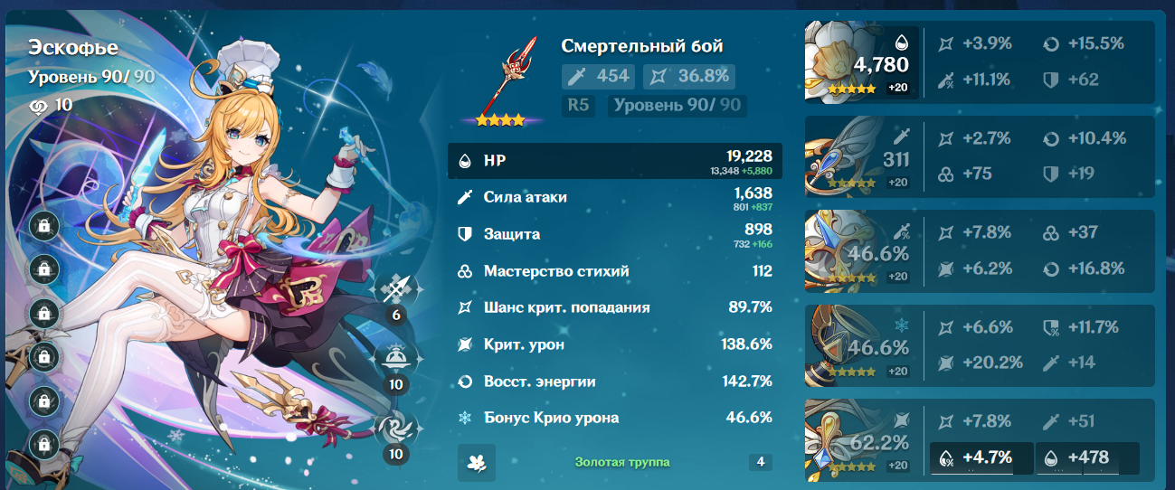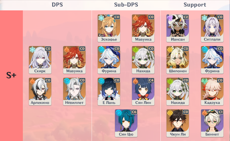 https://genshin.gg/tier-list/ Скирк и Эскофье в А-тире, в компании с Ризли... Кто-то же это составляет. А кто-то может такие тир-листы всерьёз принимать при кручении. И это при том, что С0 Скиркофье образуют пачку с, пожалуй, самым высоким С0 дпс в игре на данный момент.