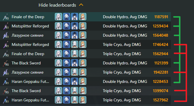 ✦ Показать персонажей картинкой https://akasha.cv/ (включая лидерборды по сборкам персонажей) ∙ https://enka.network/