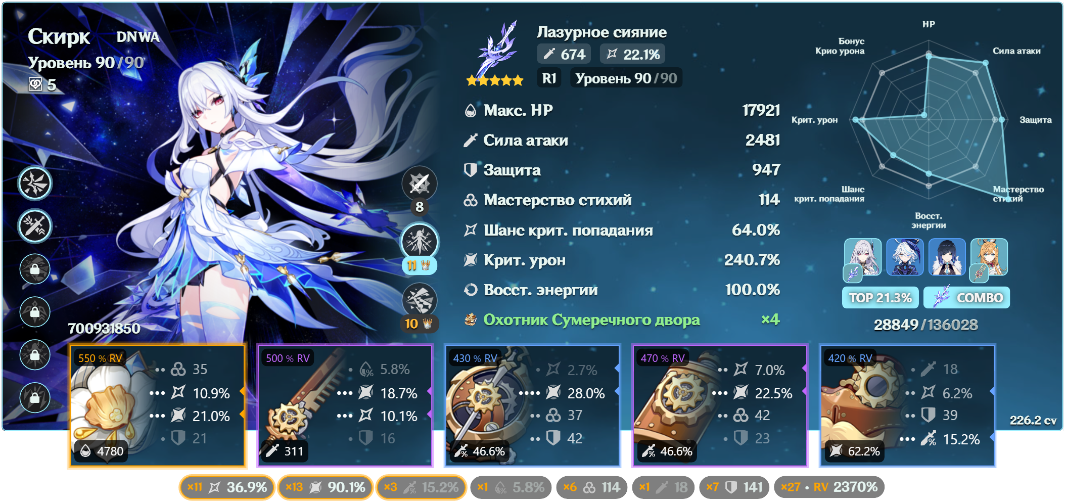 Бля я вот хз, фармить ли скирк ее сет или забить. Вообще нихуя не падает буквально ни одного арта, мб просто крио кубок из охотника скрафтить, одеть какую-нибудь офсет шапку или часы и радоваться