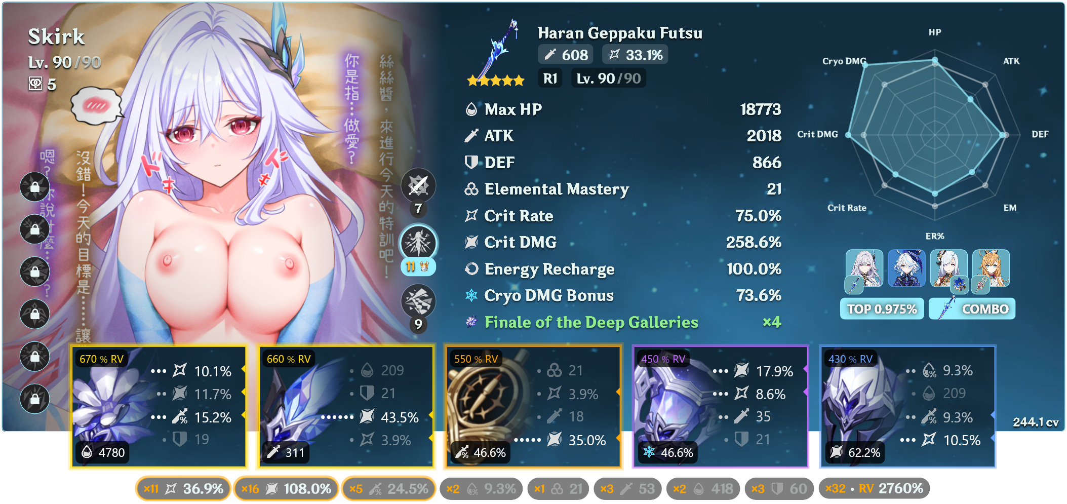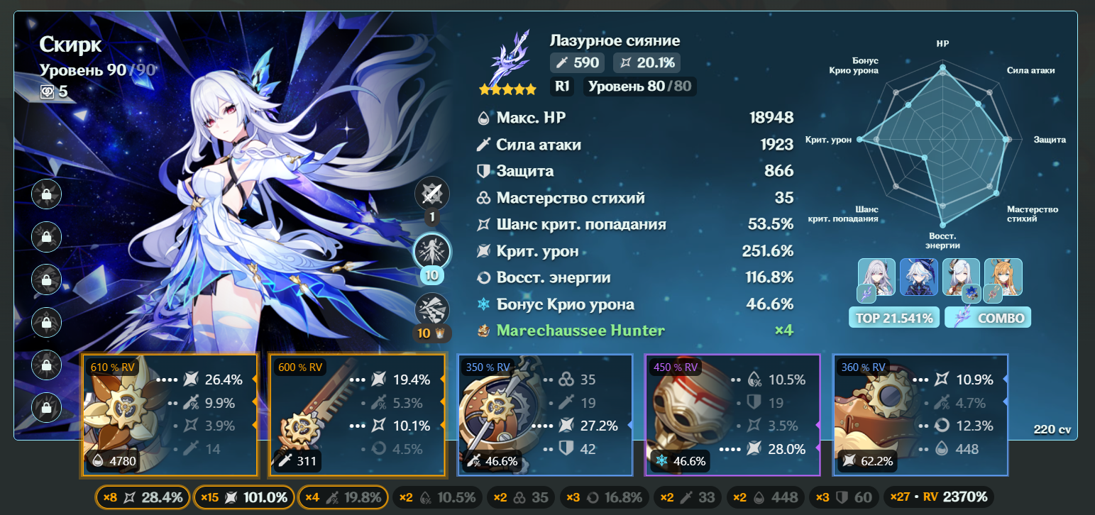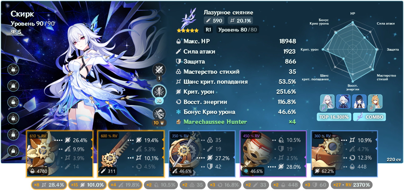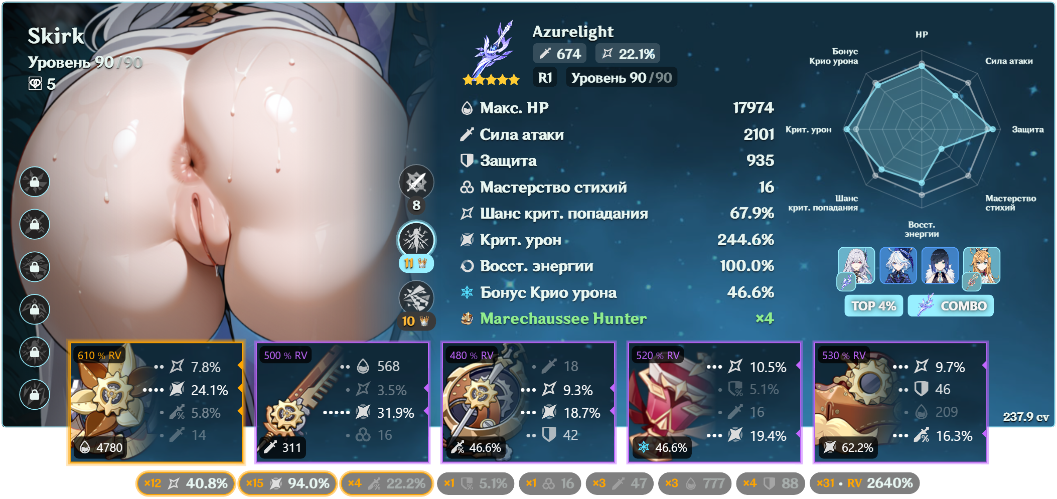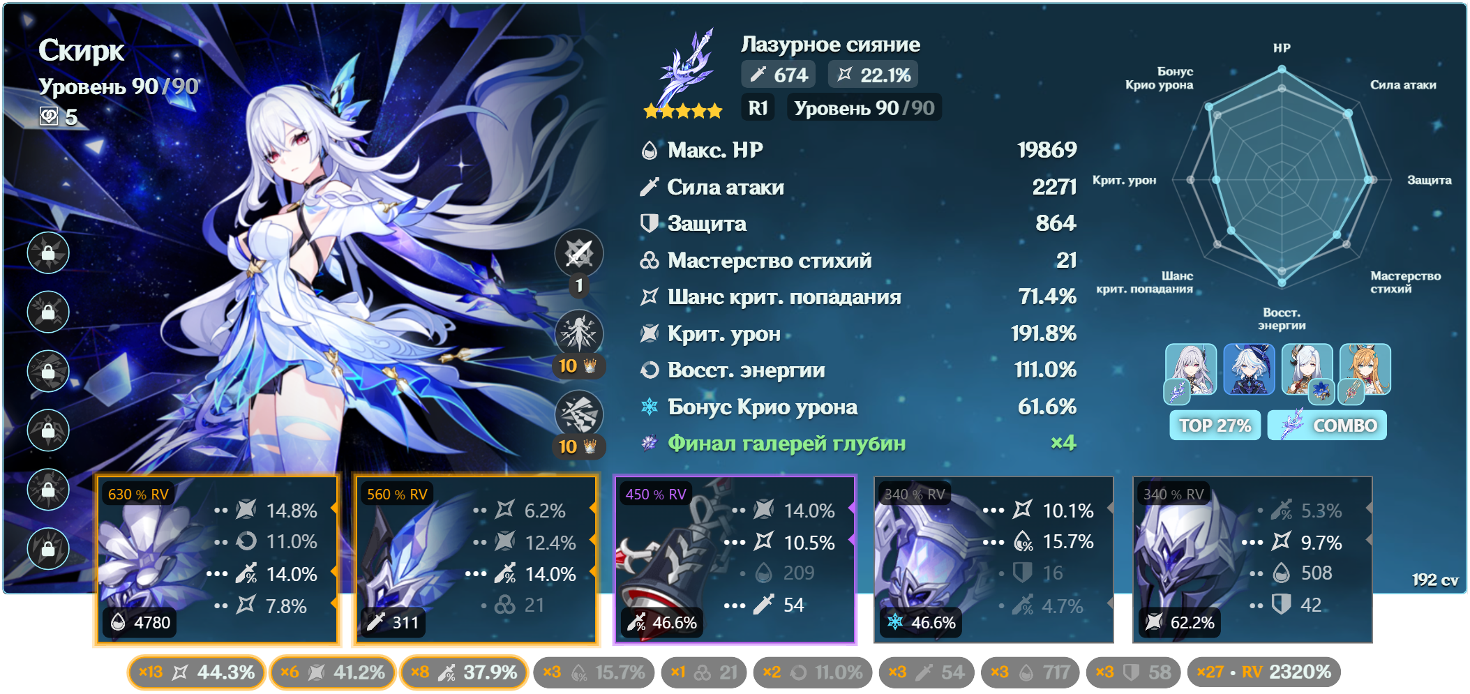 >>5148831 Действительно. Я малость прихуел, думал что хоть тут в топ1% вхожу. >>5148875 > ✦ Показать персонажей картинкой https://akasha.cv/ (включая лидерборды по сборкам персонажей)