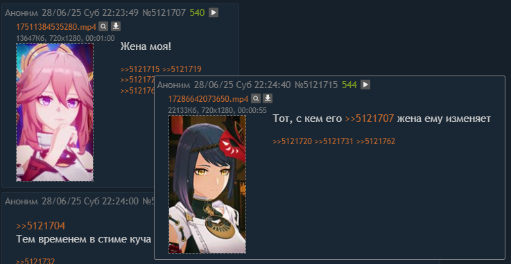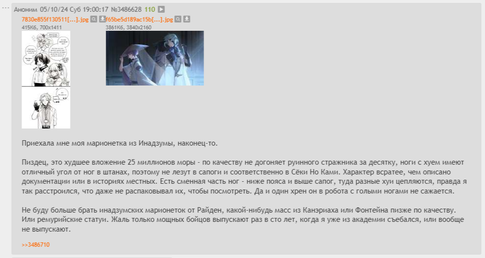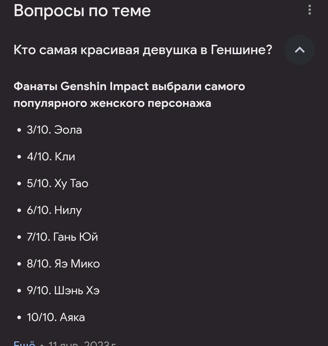 Раньше у меня была целая папка на гуглодиске с картинками по аниме. Куча папок по тайтлам, в папках подпапки и сортировка картинок. Уже многие годы я туда сохраняю только картинки по Геншину. Проклятый Ляо...