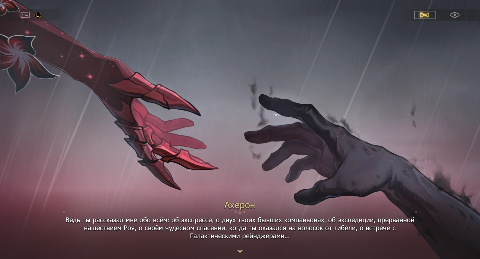 По самой Ахерон если коротко, был катаклизм с внезапным попаданием её родного мира в тень IX, была долгая бессмысленная война по итогу которой ей пришлось уничтожить этот мир, была просьба от Кевина Босенмори Касланы возложить ему на могилу цветы, когда всё закончится, она уже не знает какой в этом смысл, но это стало её миссией - отправлять фантомов оставленных мертвыми оторых поглотил IX на упокой.