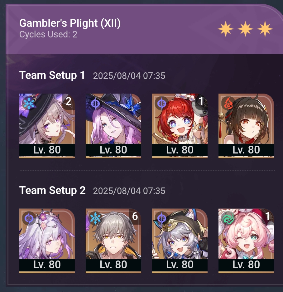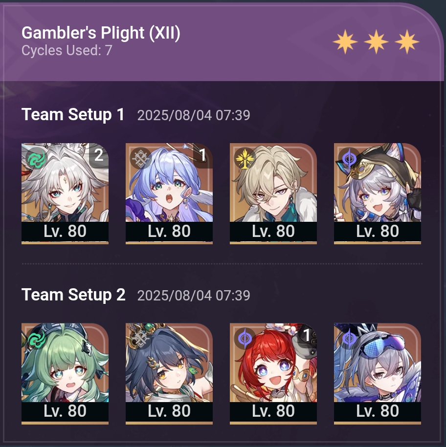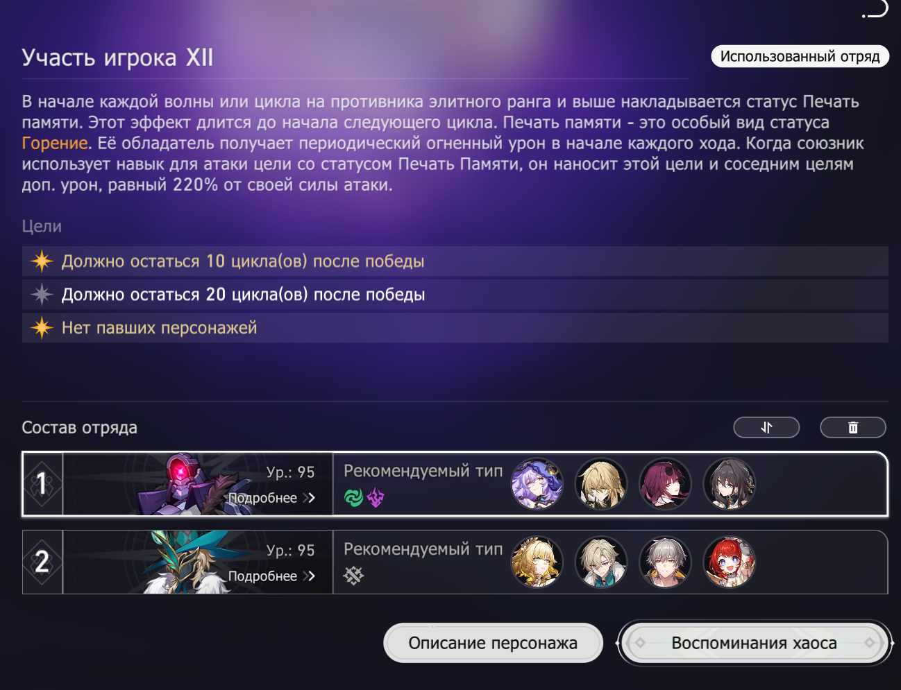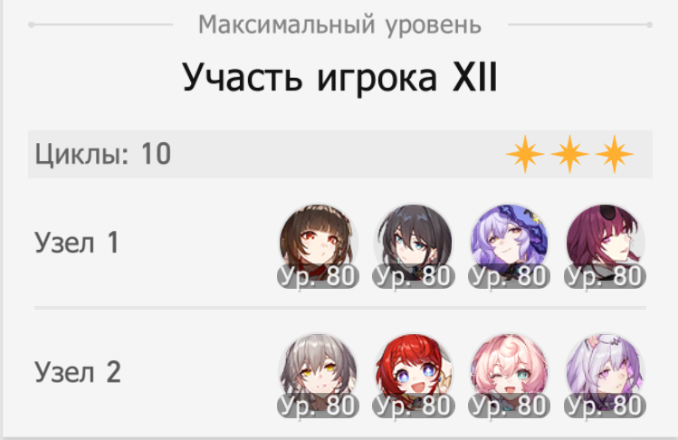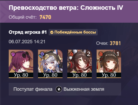 В этот раз зеркало не сложное, Фаенон порадовал быстрым прохождением своей половины. Ахерон тоже хорошо себя показывает не зря крутил для неё Цифер с сигной. Фу Сюань хорошо выполняет свою роль несмотря на то что в треде считают её плохим сустейном для нынешнего зеркала.
