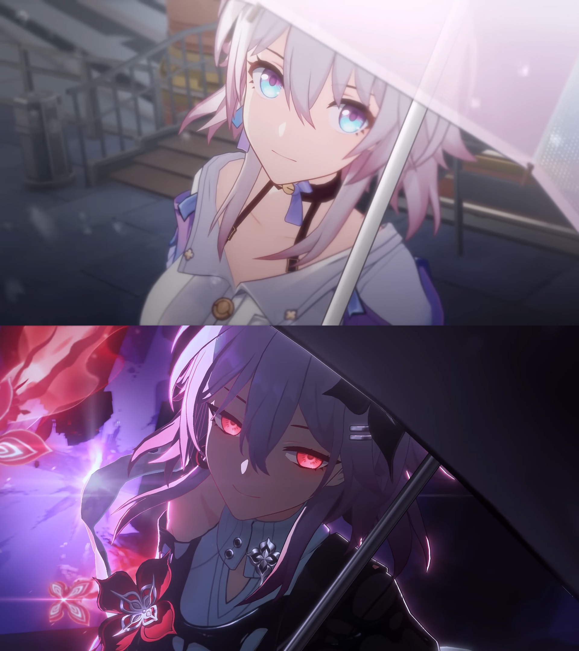 Если не учитывать год выпуска, трейлеры с Март 7, держащей зонтик, вышли с разницей в 3 месяца (март — третий месяц года) и 7 дней. Помимо этого: