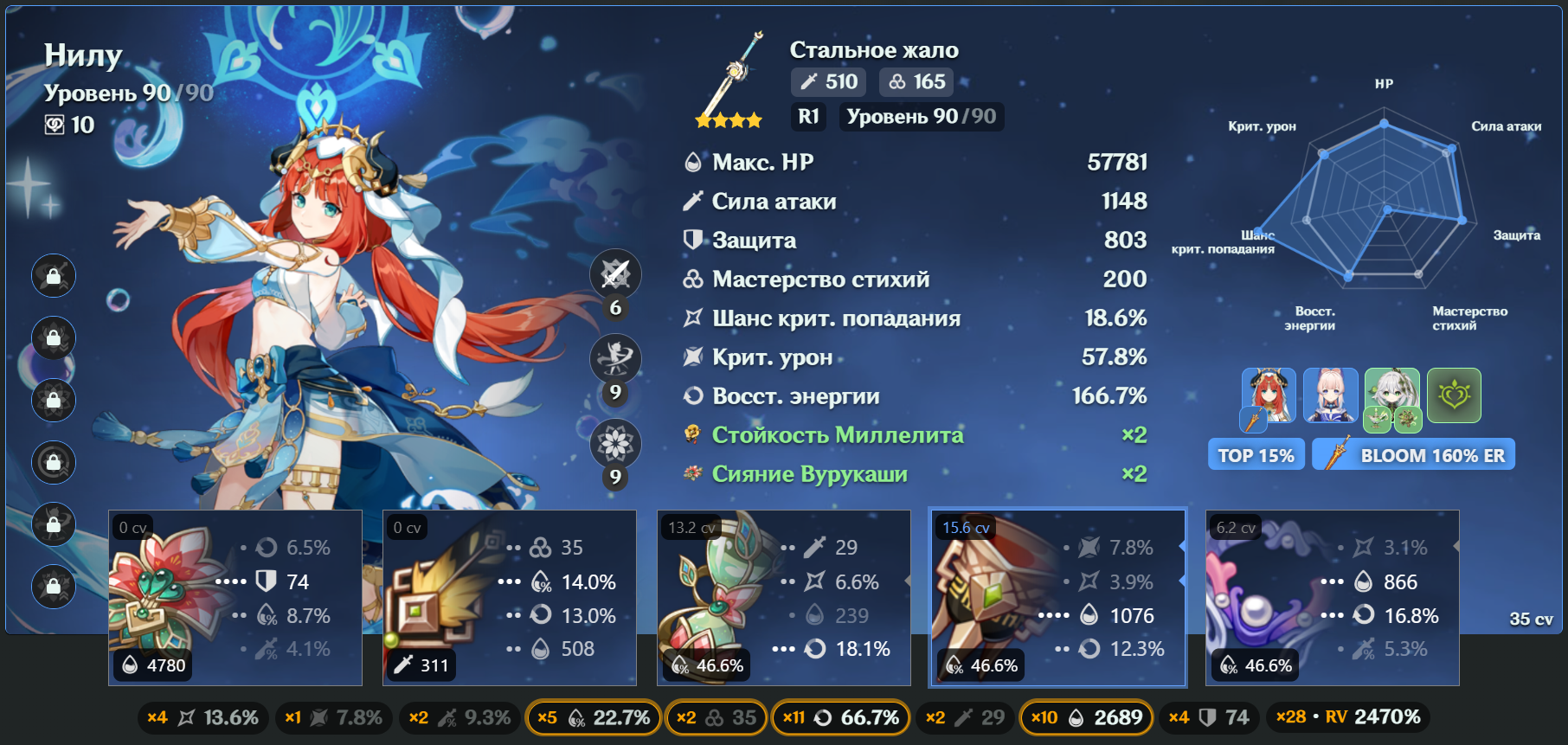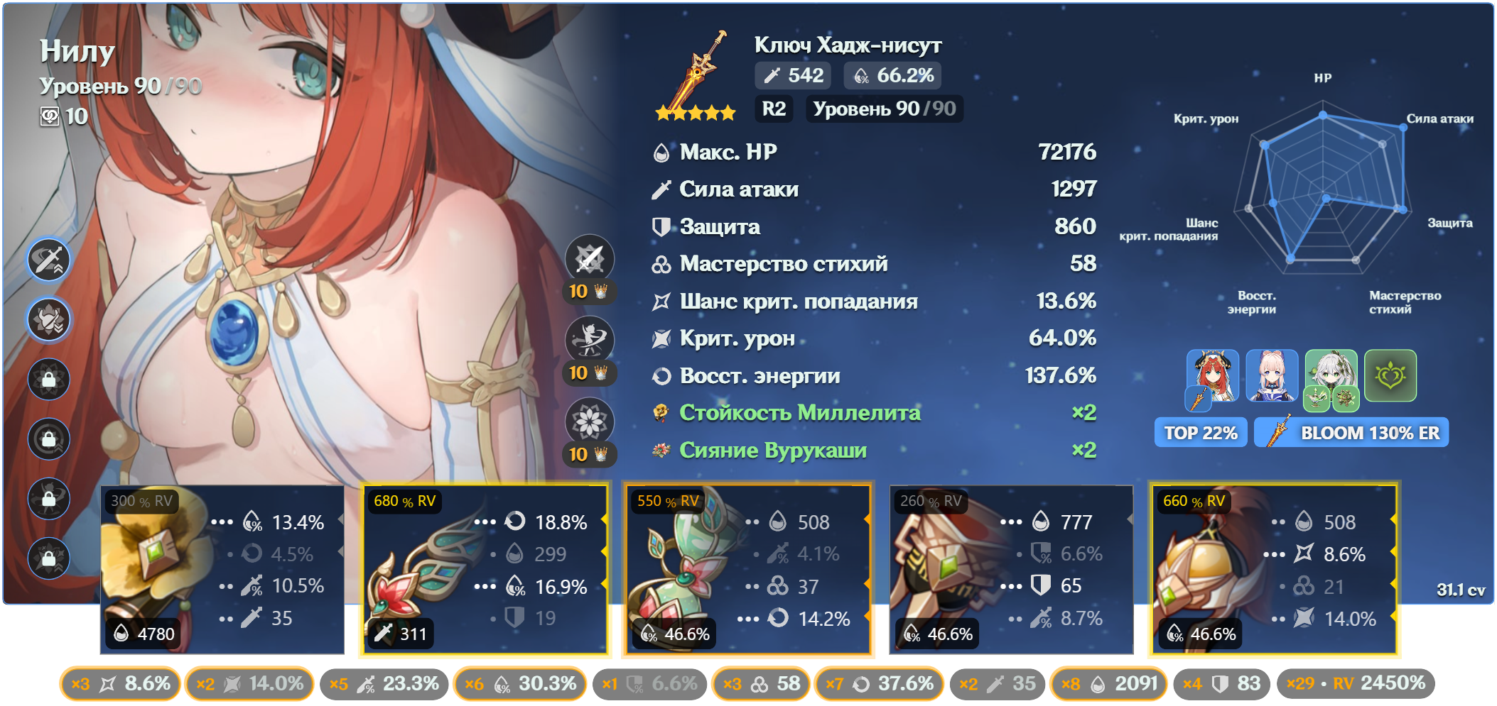 >>5511811 Разговор-то был про то как акаша по дефолту оценивает арты. А так понятно что можно включить все статы, и ходить в фулл 800RV на любом говне.